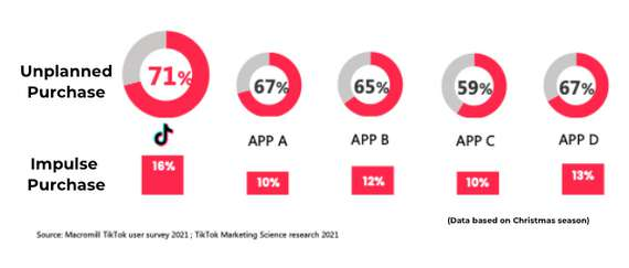 Menurut data TikTok, proporsi pembelian tidak terencana di antara pengguna Jepang mencapai 71%, secara signifikan melebihi platform lainnya.