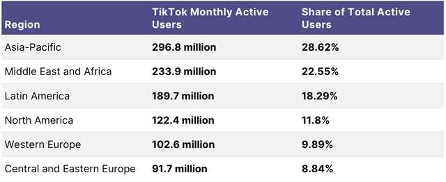 - Jangkauan TikTok di kawasan ini sangat kuat: Pengguna Aktif Bulanan (MAU) mencapai 111 juta di Brasil dan 81 juta di Meksiko. Akibatnya, Amerika Latin muncul sebagai pasar iklan terbesar ketiga di dunia untuk platform ini, hanya di belakang Amerika Serikat dan Indonesia (Sumber: We Are Social).