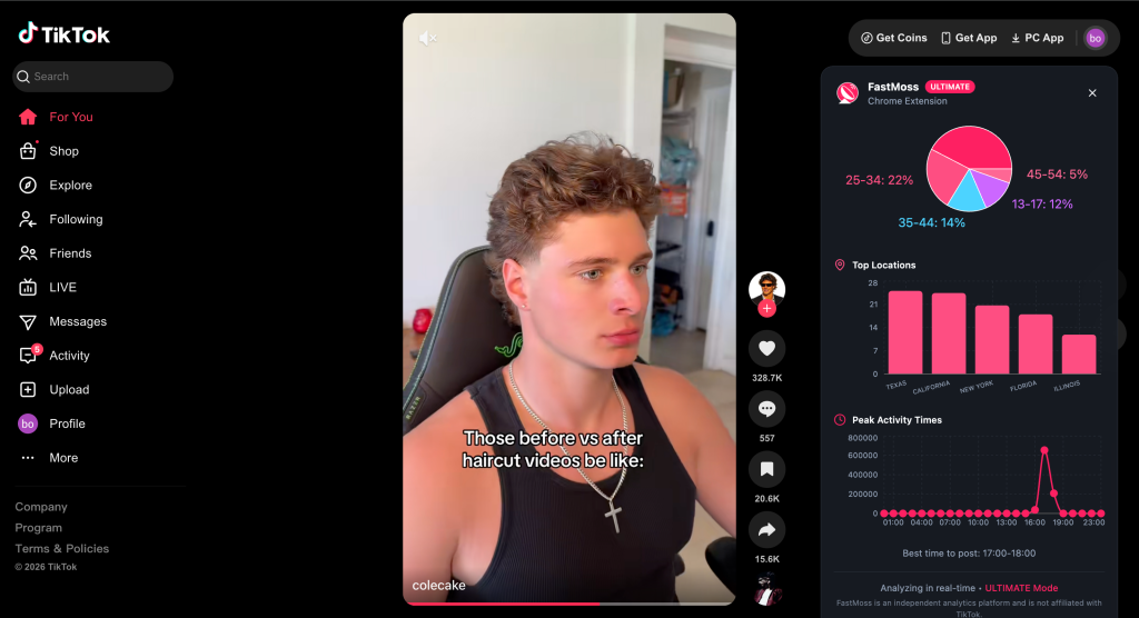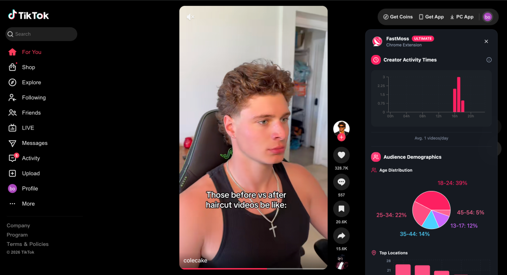 Top Locations: Where is the audience actually located? FastMoss provides a geographical breakdown, often detailing the top regions or states (e.g., Texas, California, New York) for the creator’s audience. This is a superpower for local businesses, localized product launches, and regional marketing campaigns.