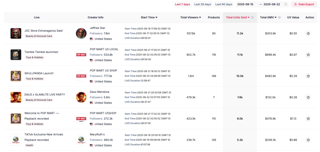 Livestreaming drove massive sales in 2024—and this year, it’s even more critical. Use FastMoss Live Performance Analytics to track engagement, GMV, and conversion during Black Friday events, so you can adjust pricing and promotions on the spot.