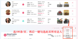 MossCreator 一键建联的上限很高,一次点击就能勾选100位达人,省去很多一页页翻找和等待网页加载的时间。