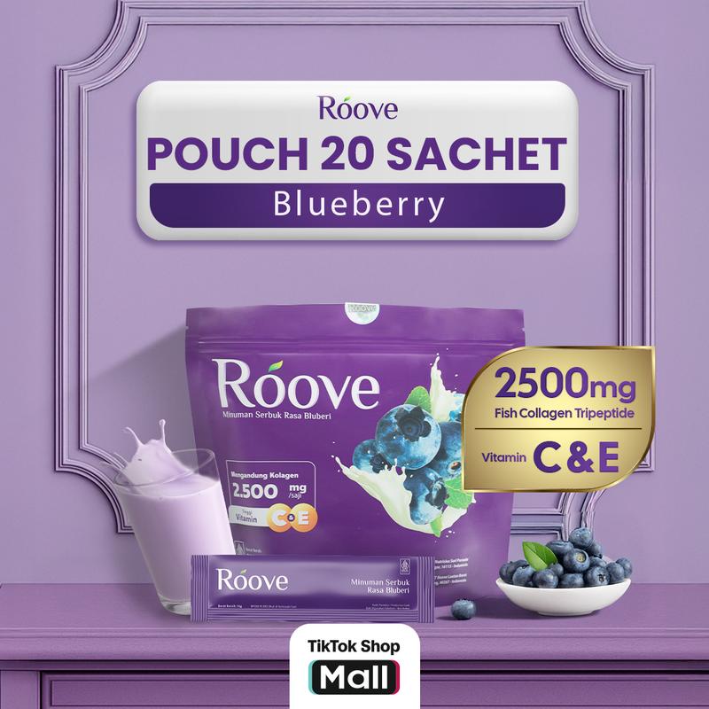 Roove Collagen Drink 20 Sachet Best Deal - Minuman Kolagen Rasa Blueberry