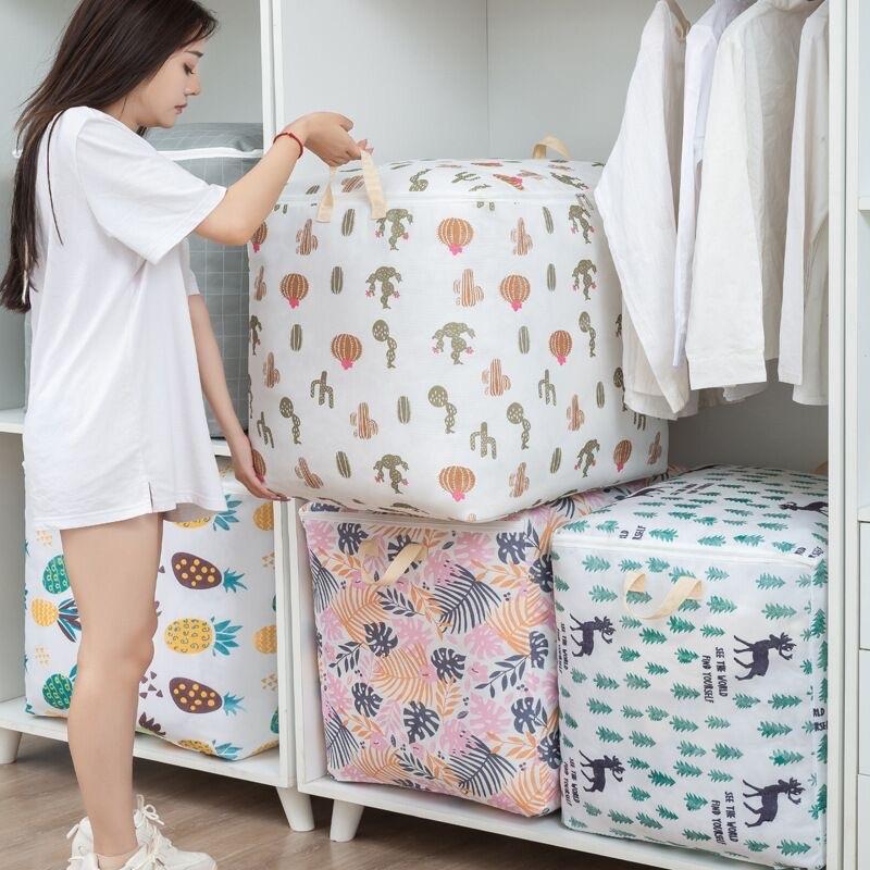 กระเป๋าเก็บของ เสื้อผ้า เครื่องนอน ขนาดใหญ่ 140 ลิตร กันน้ำ กันฝุ่น มีซิปรอบ มีหูหิ้ว กระเป๋าเก็บของอเนกประสงค์