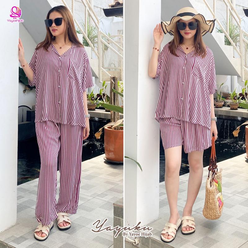 Set Piyama Wanita Sheila Oneset Salur Baju Tidur Satu Set Kekinian Yayuku by Yayoe Hijab - Celana, Muslim, Katun - Setelan