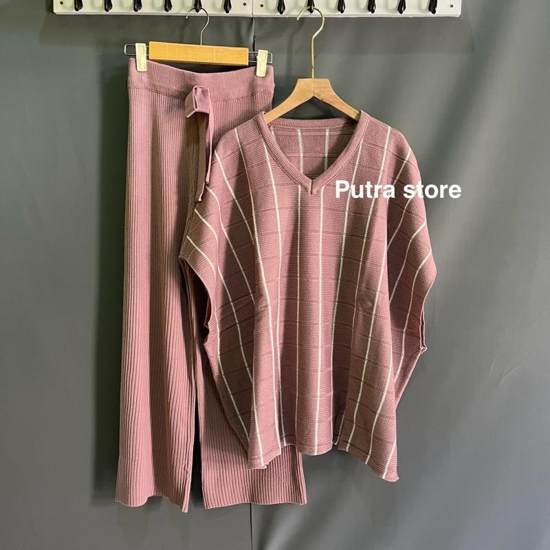 Oneset setelan wanita Asri vest rompi rajut + kulot rajut premium setelan wanita motif