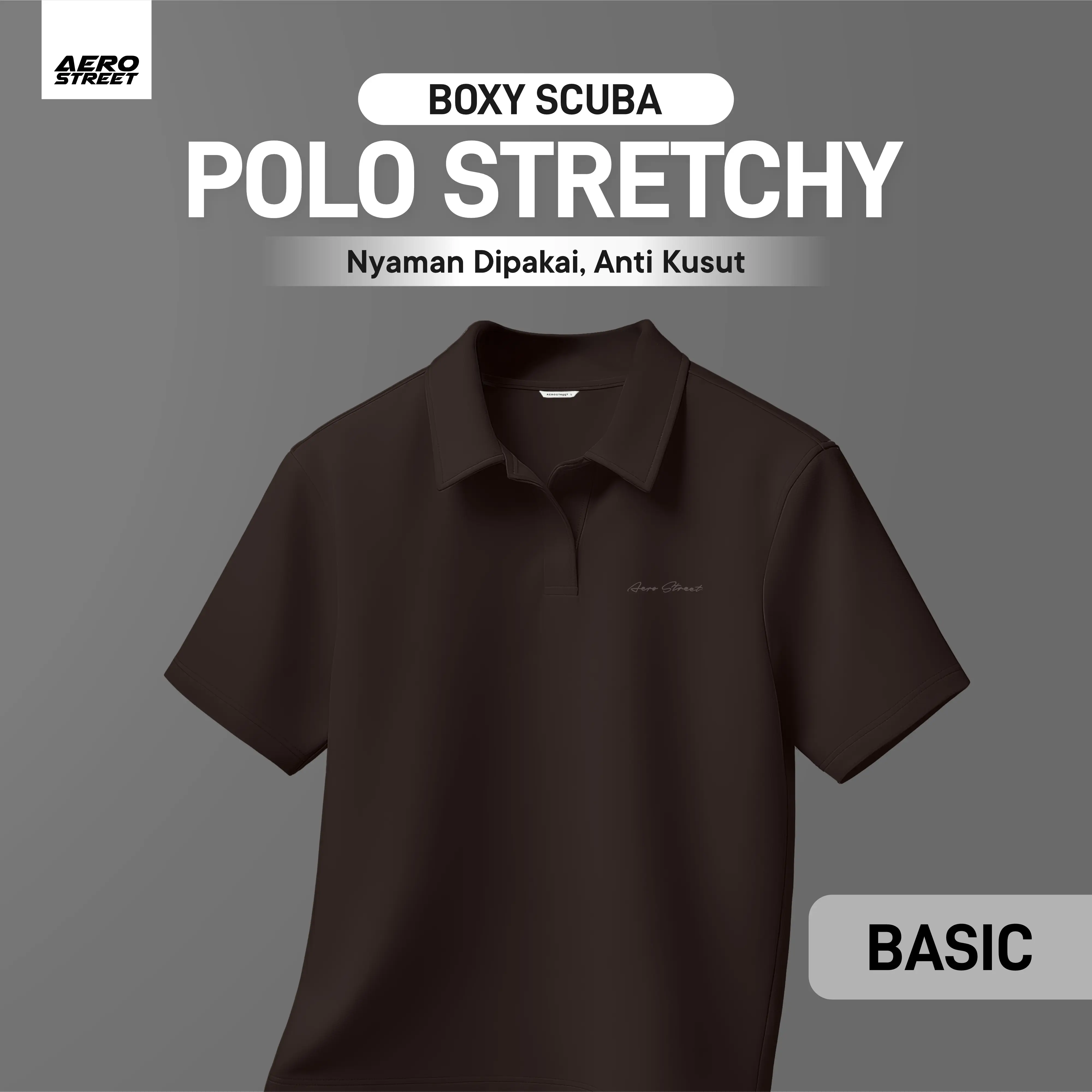 Aerostreet Zean Kaos Polo Pria Coklat Tua Poloshirt Kerah Cowok Men Casual Tidak Mudah Kusut Clean Look
