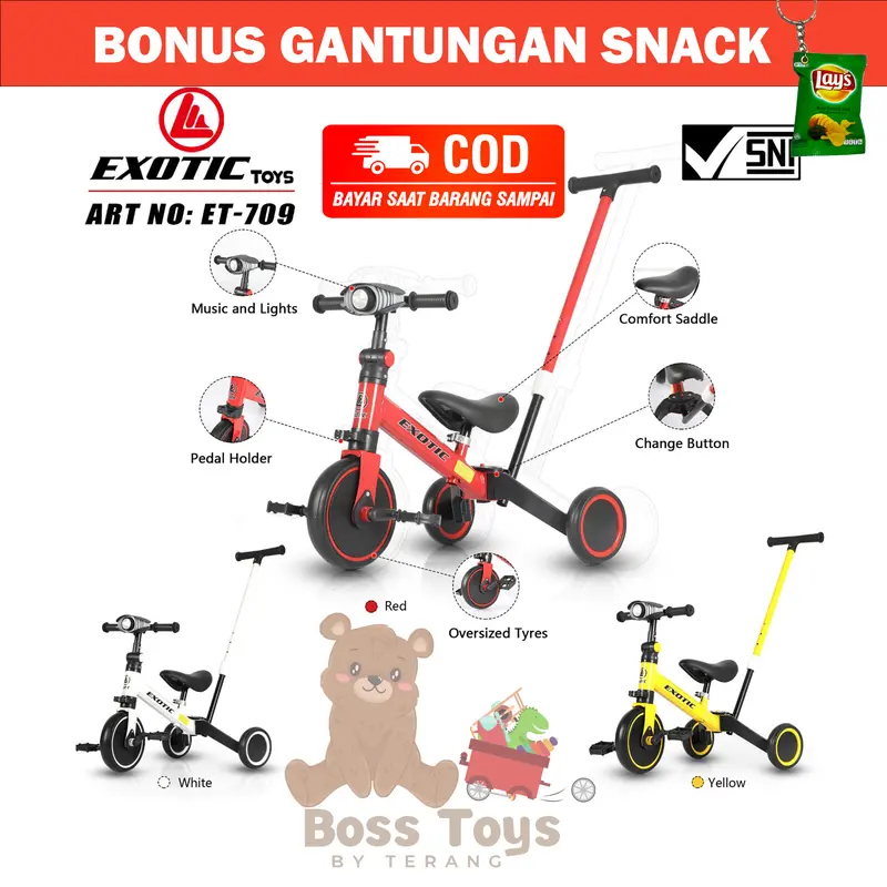 COD Mainan Sepeda Roda Tiga 3 EXOTIC ET 709, 709-7 PMB NUWA T 32 Tricycle Push Balance Bike