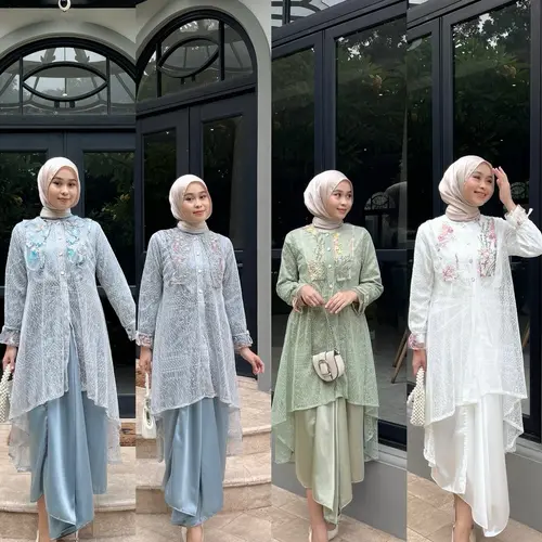 OUTER TILE GARDEN BRUKAT BAJU TUNIK WISUDA OUTFIT LAMARAN YUDISIUM KONDANGAN MUSLIM PANJANG MOTIF CANTIK REFINA BY RNO Cardigan Wanita