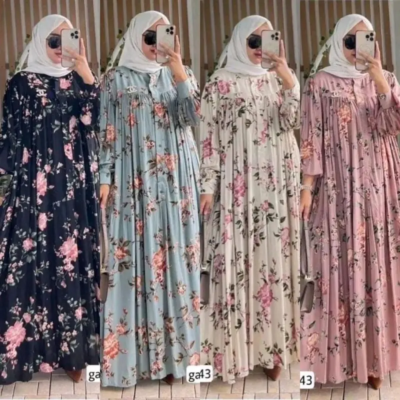 Zaskia Dress Gamis Rayon Diamond Kain Katun Premium Bunga Aloora Sakura Motif Terbaru Kekinian Cantik Formal Ibu Kancing Nyaman Panjang Muslim Kerah Tebal Menyusui anggun Lebaran Wanita Lembut Casual Garis Standar