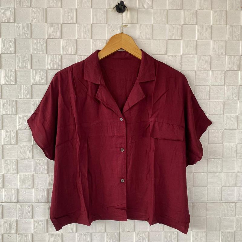 ByNayla - Nava Shirt / Kemeja Lengan Pendek Wanita / Atasan Basic polos Wanita / Korean Style / Kemeja Katun Rayon / Blus Terlaris