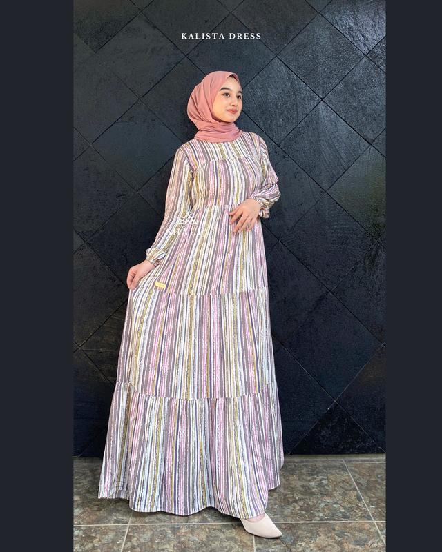Gamis KALISTA SET BELLA SQUARE Kain Rayon Tebal Motif Salur Resleting BUSUI Dress Panjang Muslimah Syari Setrip Homedress Simple Elegan Butik Wanita Lebaran Mewah Maxi Pesta Hitam