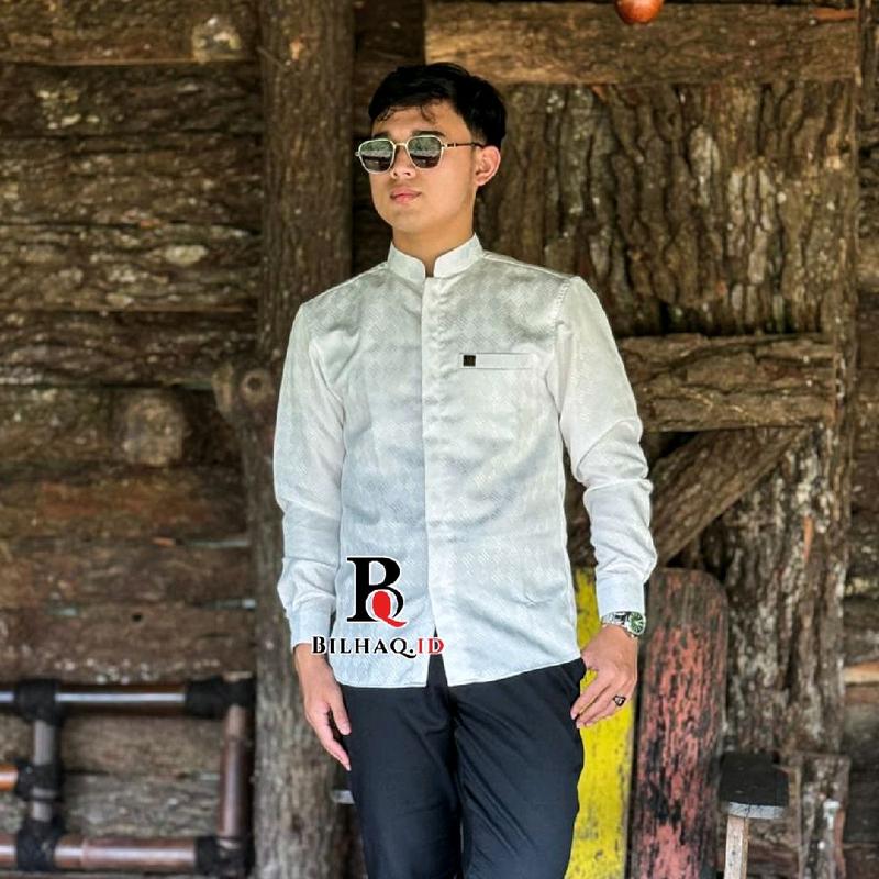 BILHAQ - Kemko Barra Bw kemeja pria Sultan jaguar Abstrak koko Sultan embos kemeja koko pria Muslim Pria Dewasa Katun Atasan