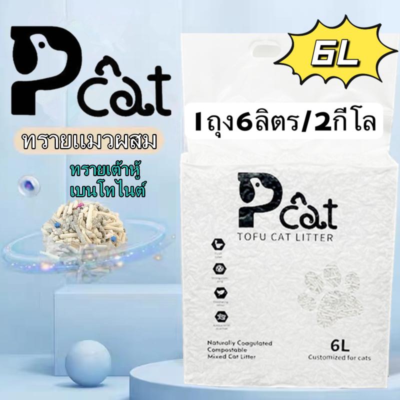 Pcat P888 Cat litter ทรายแมว ทรายแมวผสม ทรายเต้าหู้ เบนโทไนต์ มีหลายกลิ่น ไม่ติดเท้า ทรายแมวเต้าหู้ (6 ลิตร)