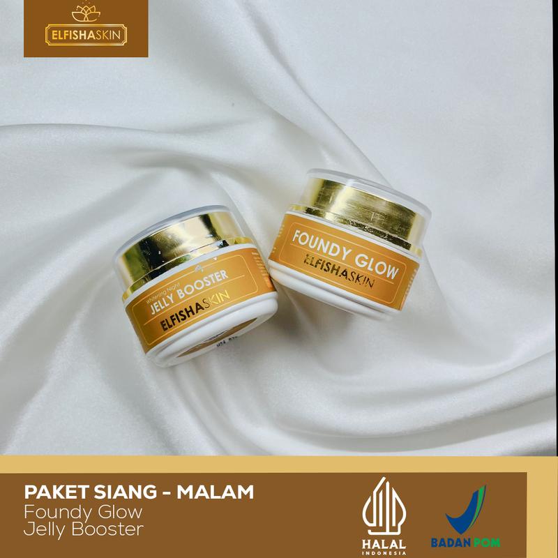 Elfisha Skin - Paket Foundy Glow & Night Jelly Booster dengan Niacinamide 2%, Glutathione, dan Hydrolized Collagen Extract untuk Mencerahkan dan Melindungi Kulit