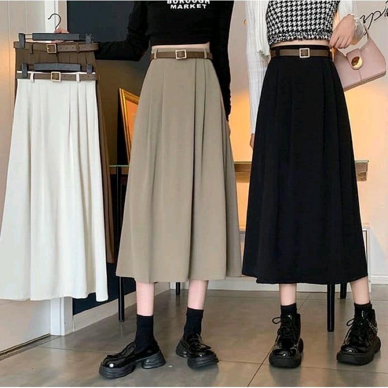 TITIKSTORE.ID-Joy Skirt-rok flare Korean Style- Bahan semi Woll _Model Panjang & Midi Wanita