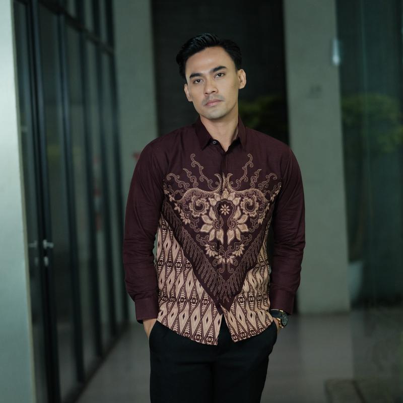 BATIK NINGRATAN MOTIF MAHESWARA BURGUNDY Kemeja Batik Pria Premium Lengan Panjang Slimfit Lapis Furing Katun Prima Halus dan Adem anak muda keren