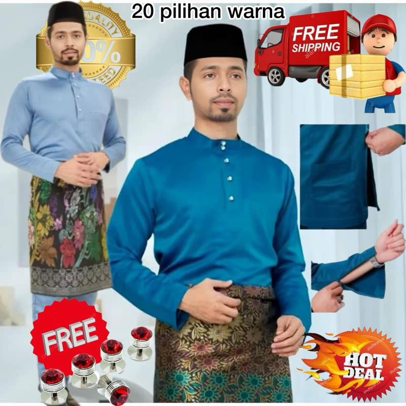 Tema 2026 Teal blue baju Melayu Slimfit Kain Paloma Pearl Skin Soft Dewasa & Budak Size 2-12 XS-2XL Free Butang SEKALI Fabric Clothing