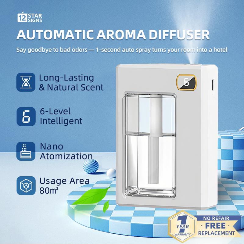 【1 Year Warranty】Automatic Aroma Diffuser Auravapor 12StarSigns Digital Display Rechargeable Diffuser Air Humidifier Scented Oil Room Scent Freshener With Colorful Light Fragrance Machine
