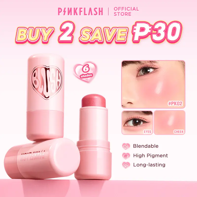 PINKFLASH Multi-Use Watery Blush Stick Healthy and Rosy Cream Blendeable High pigment Long-lasting Beginner-friendly Sun-kissed Glow Portable Moisturizing 6 Shades