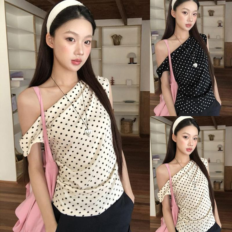เสื้อยืดแขนสั้นผู้หญิงฤดูร้อน 2026 ใหม่ระเบิดจุดปิดไหล่ด้านบนแฟชั่นเซ็กซี่2542