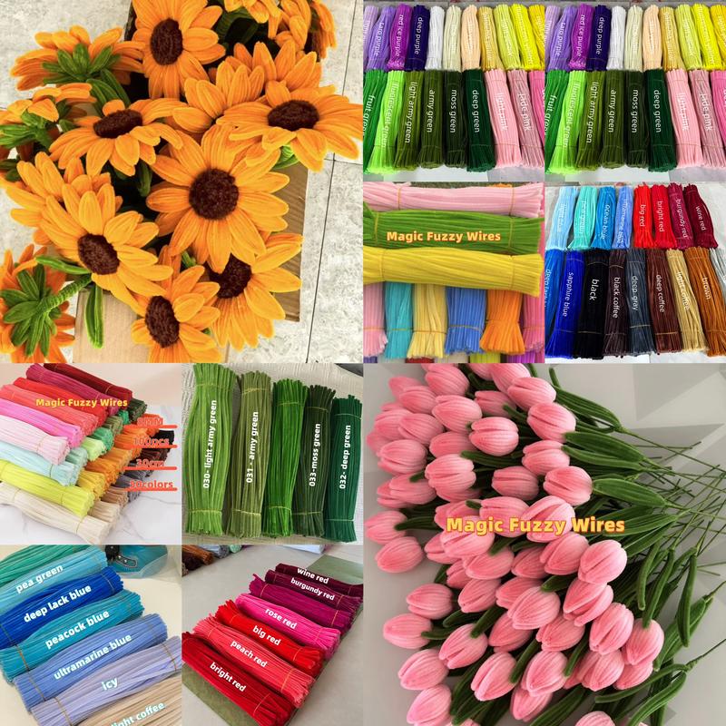 (95-100PCS) Colorful Dense Fuzzy wire Christmas Present New Year gift Fuzzy wires Chenille yarn Pipe Cleaner Fluffy Sticks Craft Children's Handmade DIY Macaron Flowers Arts Decorations For Boyfriend and Girlfriend gifts Christmas Gift