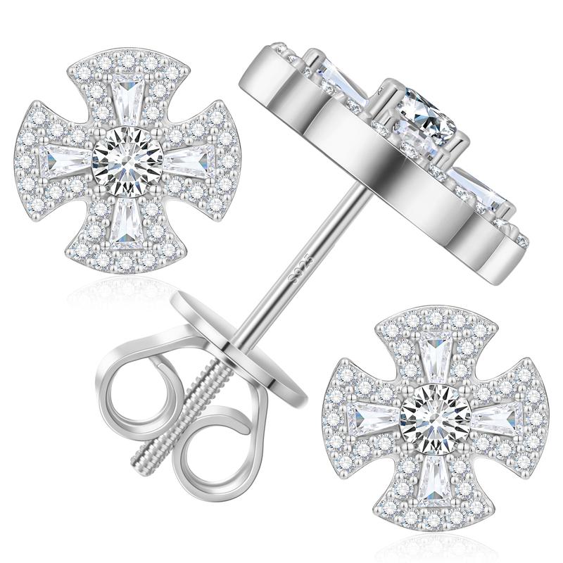 【#E567】Creative Cross Stud Earrings UCClYO Four-Leaf Clover Lab-Created Moissanite Earrings for Women 925 Sterling Silver Men's Stud Earrings Hip-Hop Jewelry Couple Gift Valentine's Day
