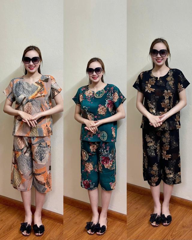 Combo 3 Bộ Lụa Hàn Châu Cao Cấp, Chất mềm mịn, thoáng mát, mặc siêu thích, dành cho các bà các mẹ từ 40-70 kg