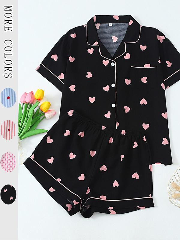 レディース ハート柄半袖パジャマ、可愛い快適な女性用パジャマセット、夏向けスリープウェア、ルームウェア