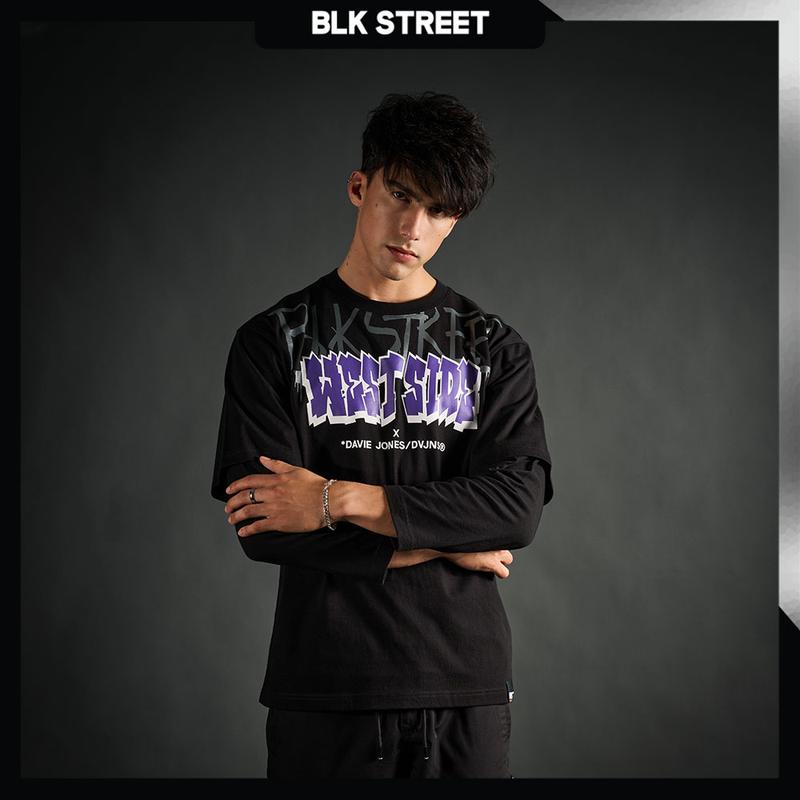 DAVIE JONES [BLK STREET] เสื้อยืดแขนยาวผู้ชาย Graphic Oversized Fit Long Sleeve 2 Layer T-Shirt สีดำ WA0251