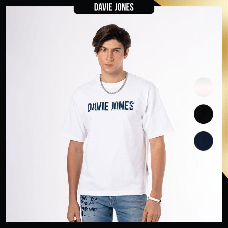 DAVIE JONES [BE FEARLESS] เสื้อยืดผู้ชาย Logo Oversized Fit T-Shirt สีขาว ดำ กรม LG0145