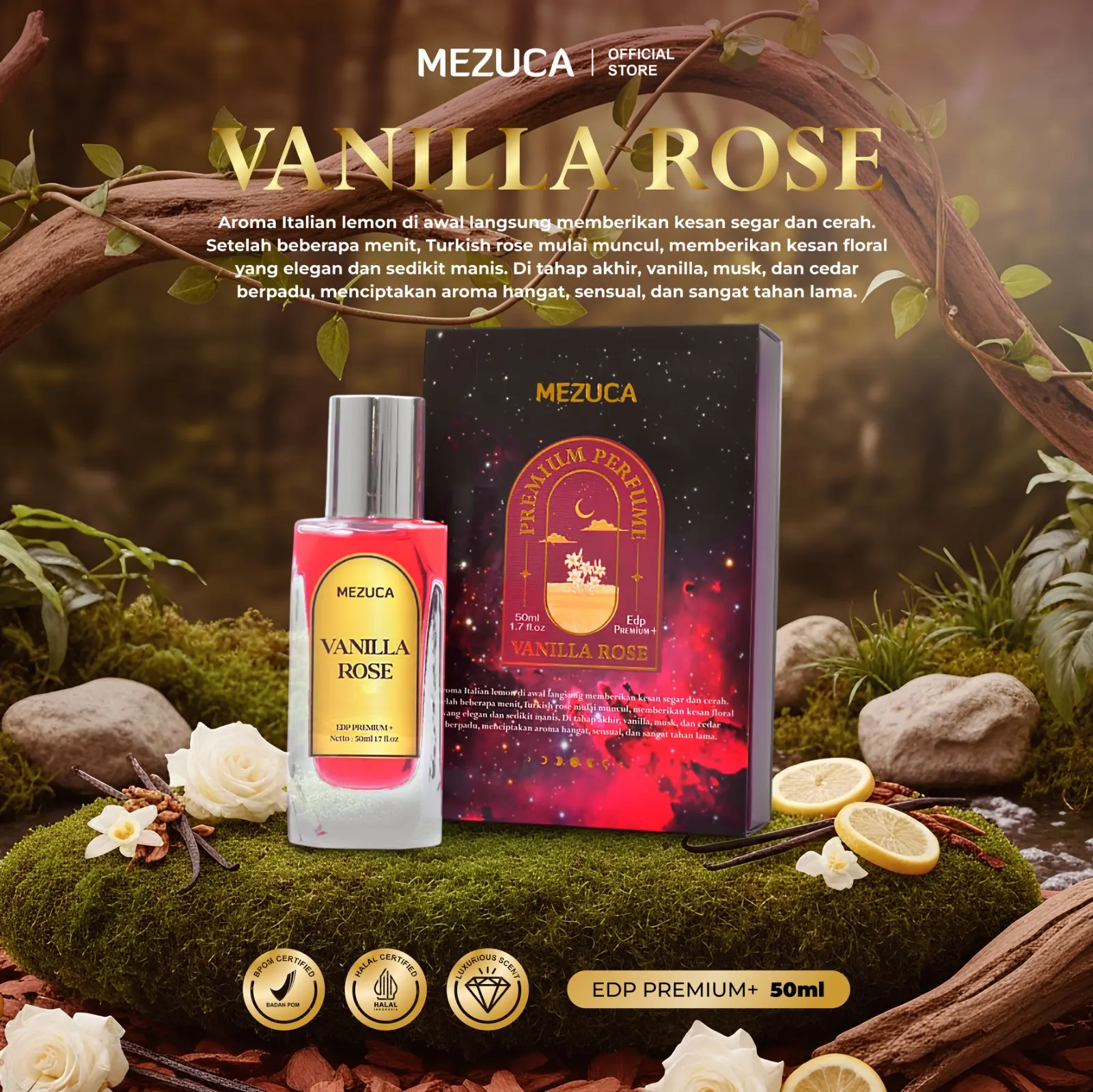 MEZUCA Perfume Vanilla Rose EDP Premium 50mL Parfum Wangi Tahan Lama For Women