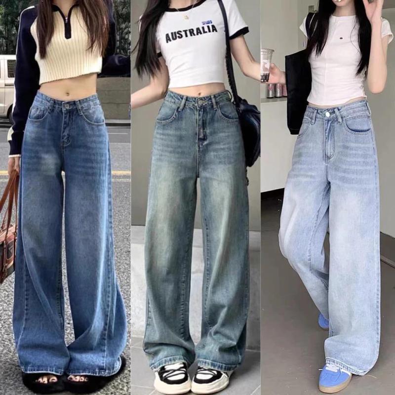 High-quality Korean-style women's high-waisted loose wide-leg jeans