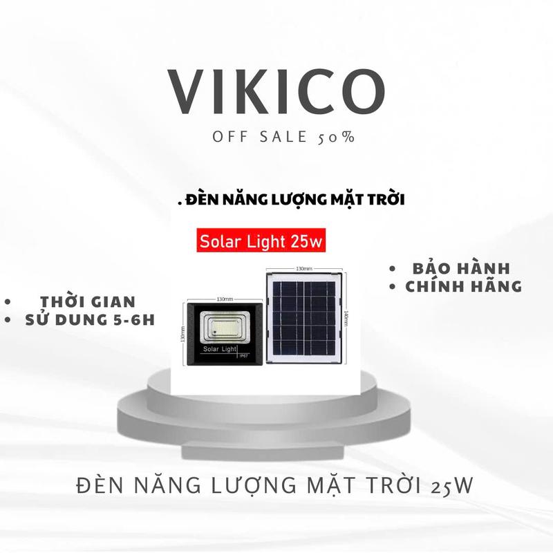 VIKICO Đèn Pha Năng Lượng Mặt Trời 25W NLMT Vỏ Nhựa Chống Nước IP69 Tiện Lợi Tiết Kiệm Điện Kèm Điều Khiển Từ Xa 5M Cáp 1500 Watt SMD 7930 Solar Light