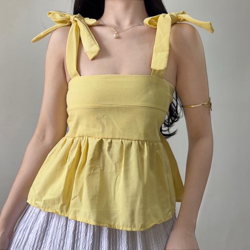 GRWM SELF-TIE PEPLUM TOP LINEN FABRIC COMFY TO WEAR