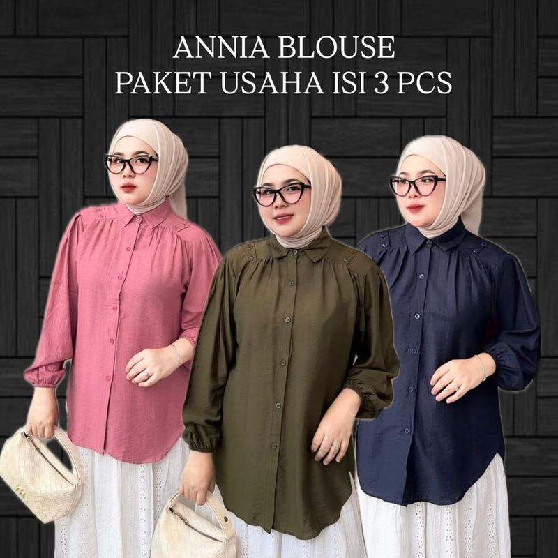 PAKET HEMAT 3 PCS ANNIA BLOUSE KEMEJA WANITA PREMIUM ELEGAN BAHAN POLO LINEN PREMIUM