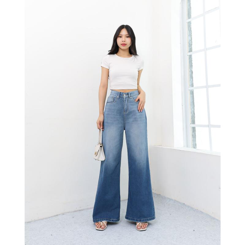 BLUEPANSY.ID - K02 Celana Panjang Jeans Wanita Highwaist Baggy Wide Leg Biru Retro Gombrong Skena Street Style Kekinian Trendy High waist OOTD Harian