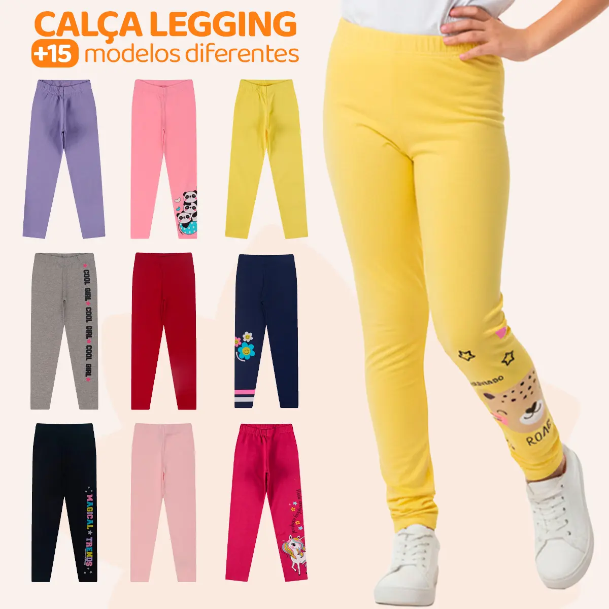 Kit 5 Calças Legging Infantil Feminina em Cotton Premium Roupa Infantil Confortável para Meninas Ideais para Escola, Brincadeiras e Dia a Dia Kit Sortido - Afiliado
