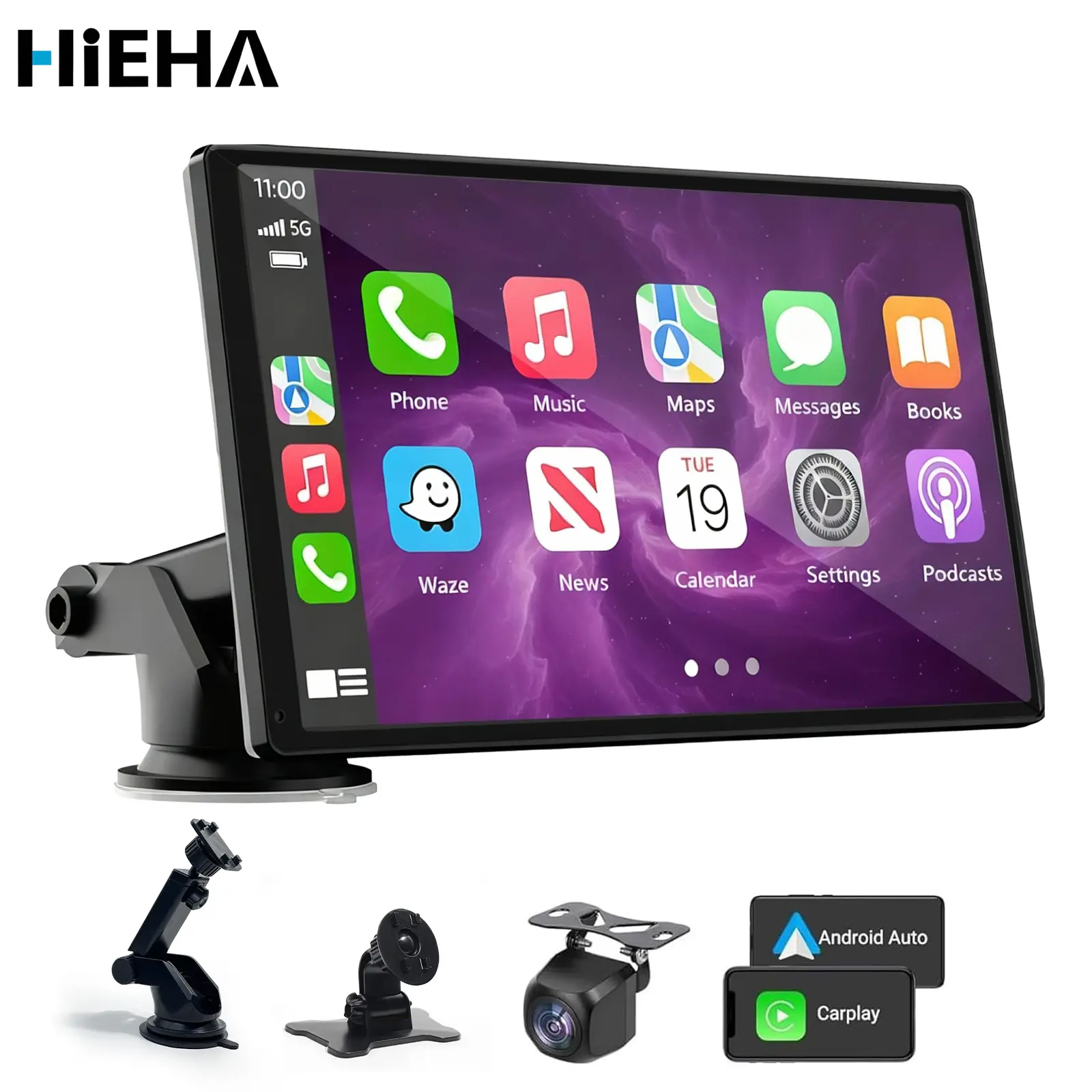 【HiEHA】2026 La pantalla portátil más nueva de Carplay para automóvil, pantalla táctil IPS de 7 pulgadas, Compatible con CarPlay y Android Auto, Cámara de Respaldo, estéreo para automóvil, soporte para GPS, Bluetooth, FM, WiFi
