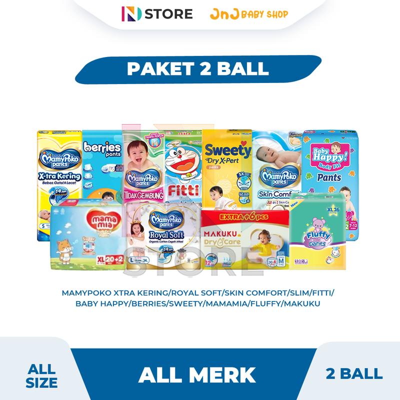 [PAKET 2 BALL] MAMYPOKO XTRA KERING/BABY HAPPY/FITTI/SKIN COMFORT/SLIM/ROYAL SOFT/SWEETY/MAKUKU/BERRIES/MAMAMIA/FLUFFY/MERRIES