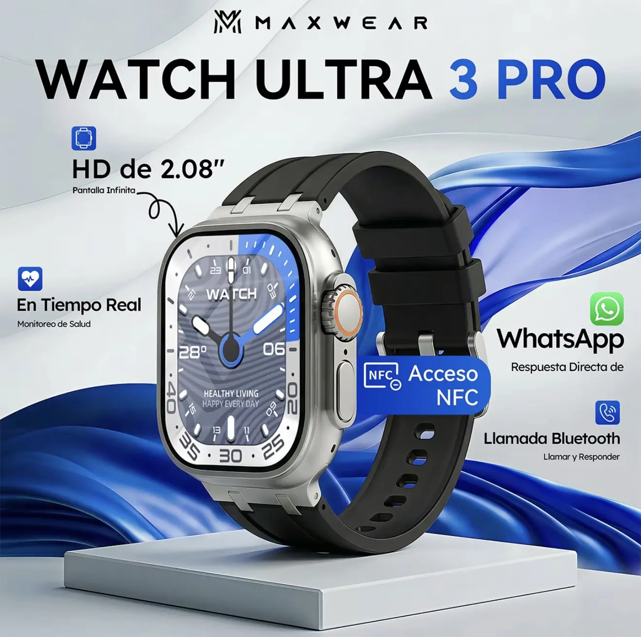 Maxwear Ultra 3 pro con 4 GB Reloj inteligente de ROM Responder a WhatsApp Bluetooth llamadas pantalla táctil completa de 49 mm NFC GPS deportes fitness ChatGPT monitoreo de salud 4 correa smartwatch