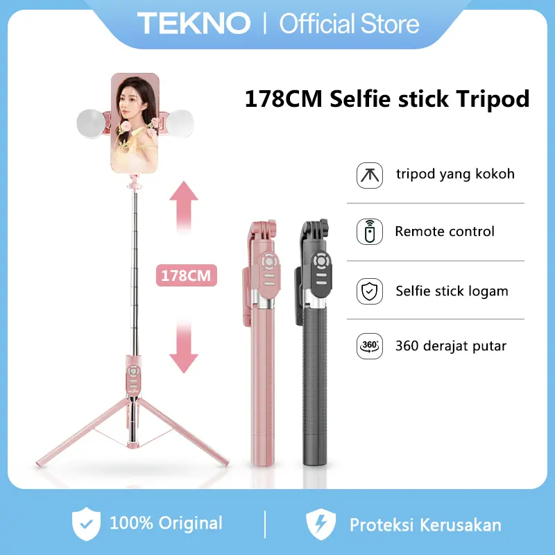 TEKNO A31 178CM Tongsis Selfie Stick Tripod HP Bluetooth Remote Control Selfie Tongsis Handphone Dengan Monopod Portable LED Lampu Untuk Vlogging Live Tripod Kokoh 360 Derajat Putar
