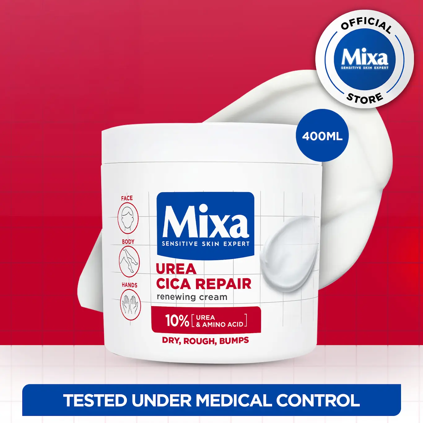 Mixa Cream, Urea Cica Repair Renewing Cream, Body Moisturiser for Dry, Rough, Bumpy Skin, with 10% Urea and Niacinamide, Hypoallergenic Fragrance 400ML