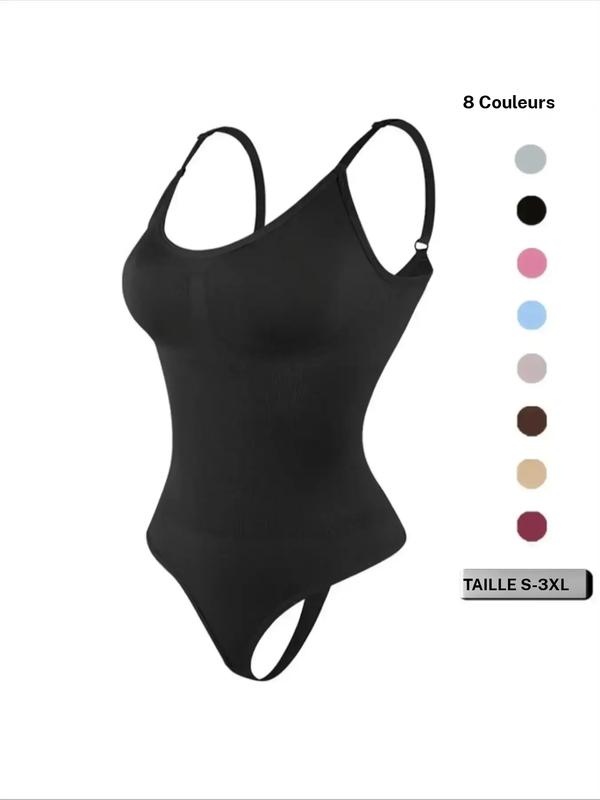 Women's Solid Adjustable Strap Backless Shapewear Bodysuit, Casual Comfy Seamless Tummy Control Butt Lifting Bodysuit for Daily Wear, Ladies Shapewear for All Seasons