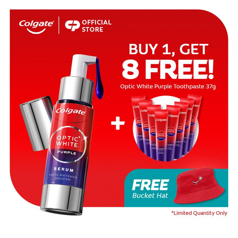[BUY 1, FREE 8] NEW Purple Teeth Whitening Booster Serum 40ml + Colgate Optic White Purple Toothpaste 37g Pack of 8