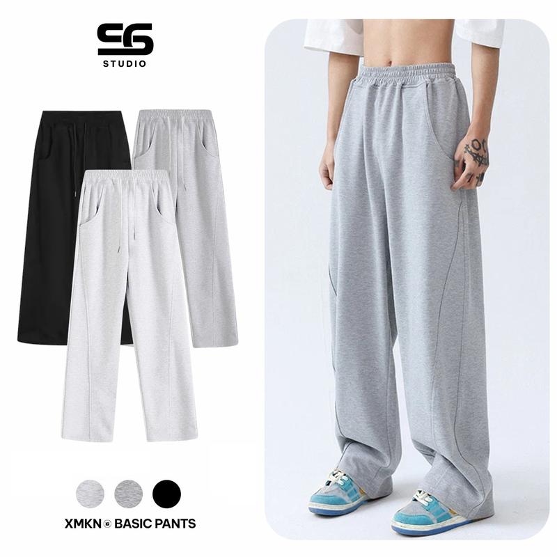 Quần Nỉ 2 Da Form Rộng Phủ Giày - Quần Dài Đứng Form Co Giãn Track Pants 6S Unisex Nam Nữ Line Chéo - Menswear.