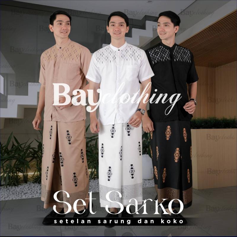 Bayclothing Setelan SARKO Sarung Dan Koko Lengan Pendek Motif Bordir Diamond Sarung Motif Sarang Tawon