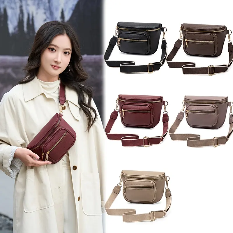 Mumu 5069 Women PU Leather Crossbody Chest Bag with Zip Closure Casual Simplicity Utility Bags for Students and Women in Black Brown Maroon Beige and Taupe