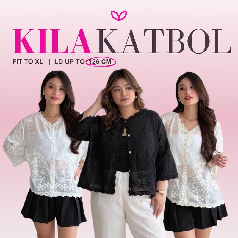 Pluffyschoice Kila Katbol Embroidery Lace Outer Transparent Baju Atasan Wanita