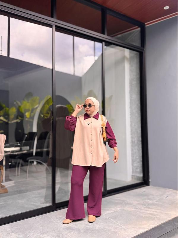 Denacollection Shadira Setelan Celana Cutbray Kemeja Tangan Panjang Busui Friendly Baju Oversize Wanita