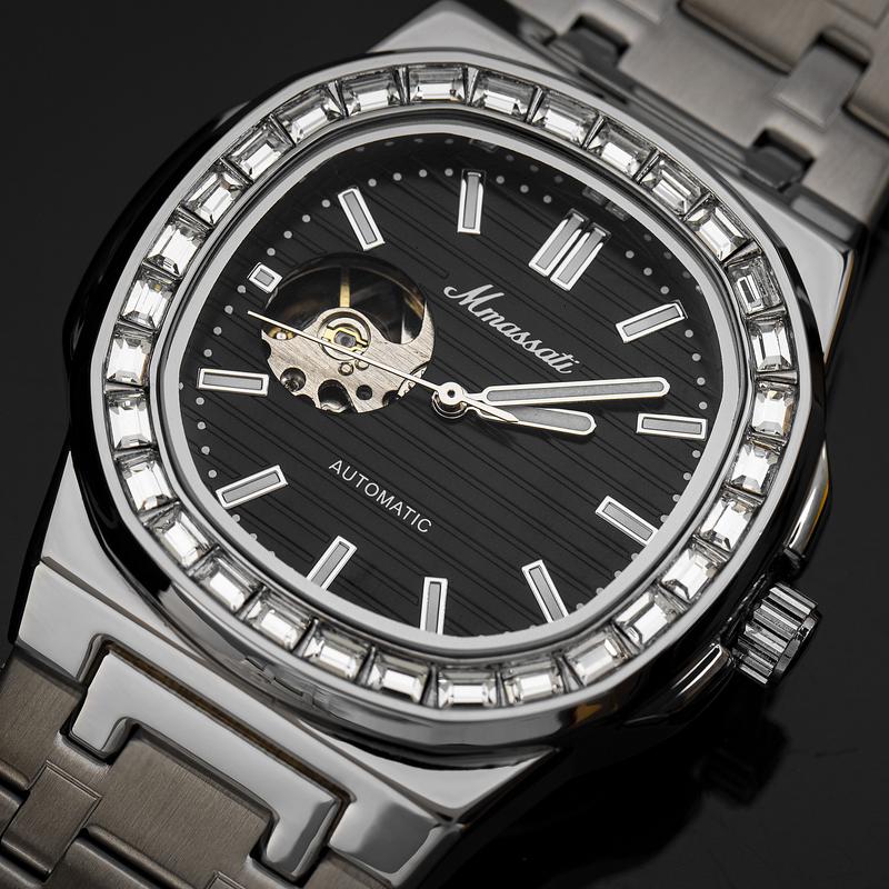 N328 - Đồng hồ nam Mmassati Automatic – Thiết kế lộ cơ tinh xảo, viền đá sang trọng